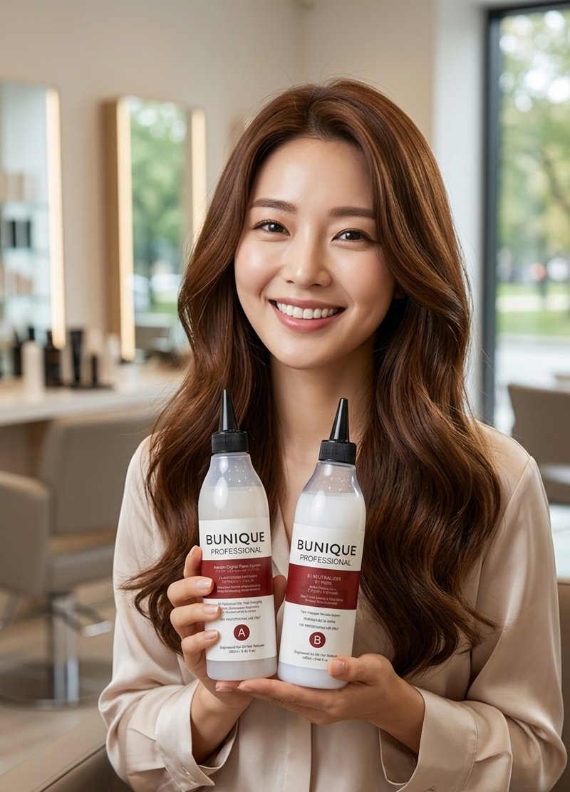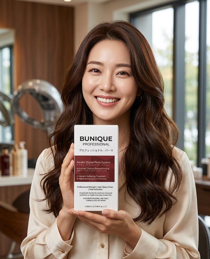 Unlike traditional harsh perms, BUNIQUE is infused with Hydrolyzed Keratin. This provides maximum structural protection, making it the go-to choice for fragile, porous, or color-treated hair that typically struggles with chemical processing.