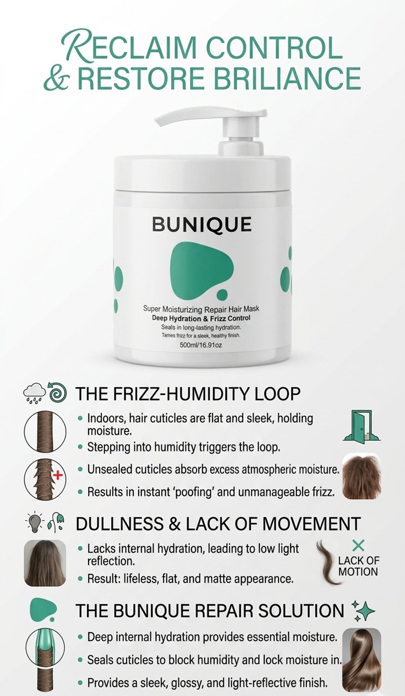 The Frizz-Humidity Loop: Hair that looks great indoors but poofs up the moment you step outside due to an unsealed cuticle.