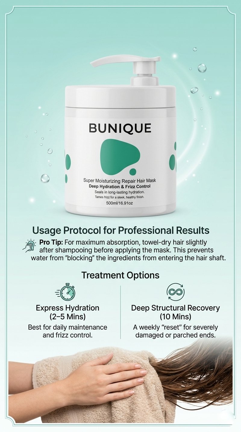 Pro Tip: For maximum absorption, towel-dry hair slightly after shampooing before applying the mask. This prevents water from “blocking” the ingredients from entering the hair shaft.