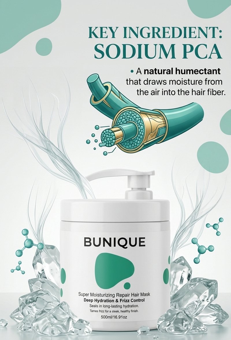 Sodium PCA: A natural humectant that draws moisture from the air into the hair fiber.