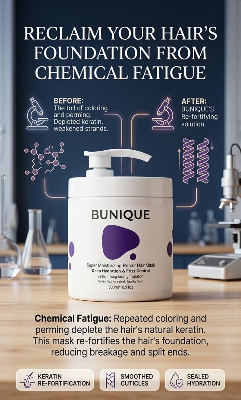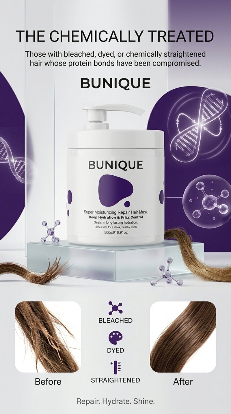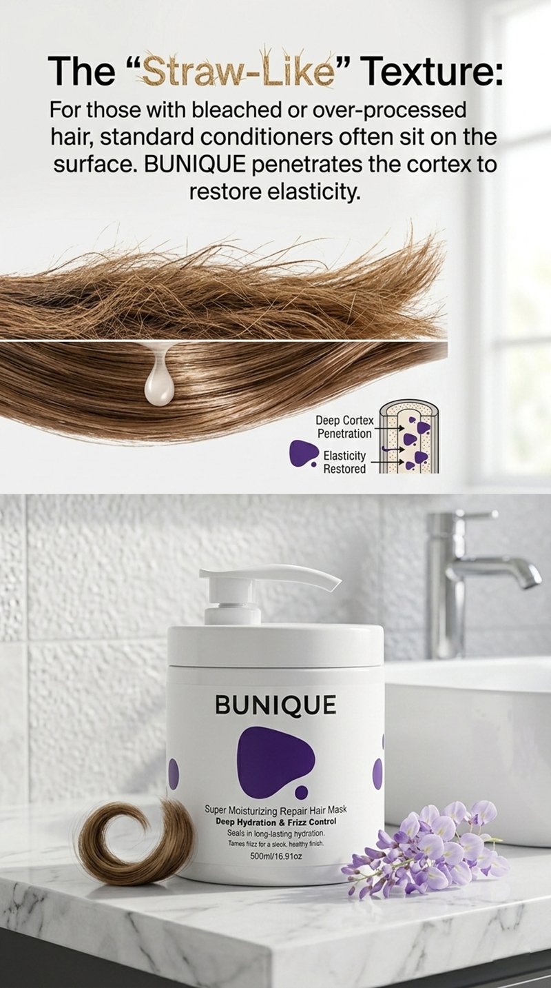 The “Straw-Like” Texture: For those with bleached or over-processed hair, standard conditioners often sit on the surface. BUNIQUE penetrates the cortex to restore elasticity.